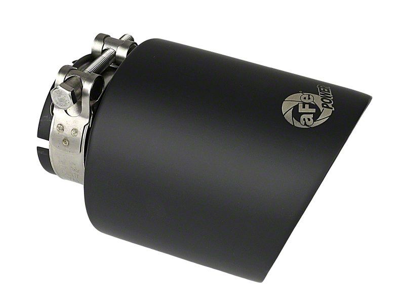This tip is constructed using 304 stainless steel for maximum strength and durability. Branded with a laser etched aFe POWER logo for quality authenticity. A high quality stainless steel barrel band clamp is used for a complete 360 degree sealing surface. Universal tip - will fit to 2-1/2" exhaust tubing and is easy to install and adjustable. See below for specifications. 2-1/2" inlet x 4" outlet x 7" overall length
