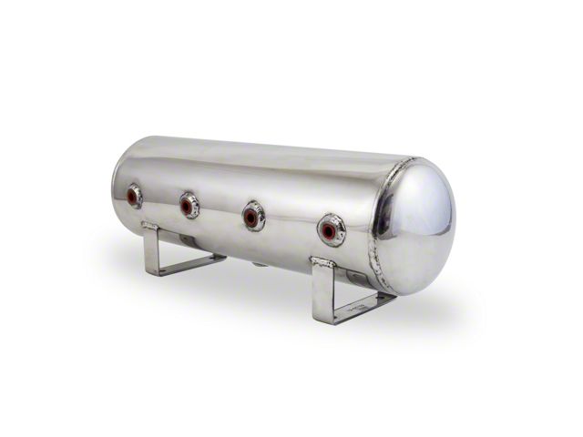 2.5 Gallon Aluminum Air Tank, (4) 1/4in face ports, 6in D X 20in L, light weight, polished aluminum, 200PSI maximum operating pressure. Customizing your car is all about choices and when it comes to your air tank, that should be no different. With our aluminum tanks, we can offer you a wide variety of sizes, port configurations, and finishes. Our extruded aluminum tanks are now available in raw aluminum or in a super high quality polished finish. If the look of aluminum is not really your thing, simply take your tank to your favorite powder coating or anodizing shop for a show stopping finish. Whether you decide on a splash of color or bare aluminum, you cannot go wrong with the look of an Air Lift Performance tank! No matter the size of your mounting area, we have a tank that is sure to fit. Ranging from sizes of 2.5, 4, and 5 gallon these tanks will hold just the right amount of air you are looking for. With our 4 gallon tank you can even choose different port configurations to really customize your set up. Another huge benefit with our aluminum tanks is the tremendous weight savings you will see over a standard steel tank. Less weight can mean faster lap times and improved weight distribution.