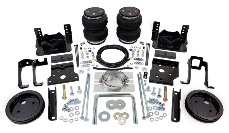 LoadLifter 5000 ULTIMATE adjustable air spring kits feature all of the benefits of our heaviest rated air spring with the addition of an internal jounce bumper inside the spring for the ultimate in ride comfort. An Air Lift exclusive product! Fits vehicles with in-bed hitches. Tow and haul the heaviest loads with safety and comfort with LoadLifter 5000 ULTIMATE. Works with vehicle's leaf springs to provide up to 5,000 lbs. of rear load leveling capacity and keeps the vehicle riding stable, level and comfortable whether loaded or unloaded. Fully adjustable from 5 to 100 PSI. The closed-cell urethane foam jounce bumper inside the ULTIMATE air springs provide a cushion of air that absorbs shock, eliminates harsh jarring on rough roads and protects vehicles carrying heavy loads. Never bottom out again with the ULTIMATE! LoadLifter 5000 ULTIMATE air springs are maintenance free! Safely run with zero air pressure because of the internal jounce bumper. Replaces factory jounce bumper that is sometimes removed when adding air springs. Requires no drilling into frame! Includes industry-exclusive 60 Day No Questions Money Back Guarantee! Includes the most comprehensive Lifetime Warranty in the industry---covers all kit contents including brackets, fittings and air line. Air springs are built like a tire and are reinforced by durable, 2-ply fabric for maximum strength. Exclusive upper and lower roll plates included. Protect the springs from sharp edges, such as brackets or the frame. The kit includes 2 air springs, brackets, air lines, Schrader valve and all of the hardware needed for installation. Includes fully illustrated instruction manual. Add an Air Lift on-board air compressor system to inflate and deflate air springs with the touch of a button from inside or outside of the vehicle.