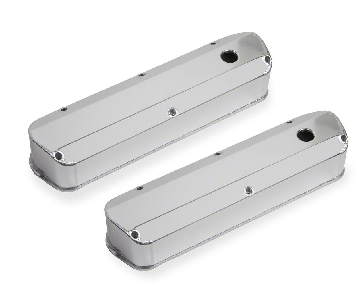 Mr. Gasket's aluminum valve covers are precision die cast for light weight and a perfect fit. Beautifully polished to a high luster, they are sure to enhance the appearance of any engine compartment. They feature an extended sealing lip to positively locate and secure the gasket and stop it from moving to eliminate oil leaks. Available with plain or ball-milled tops and include a 1 1/4 inch diameter breather hole, except where noted. Packaged two per set.