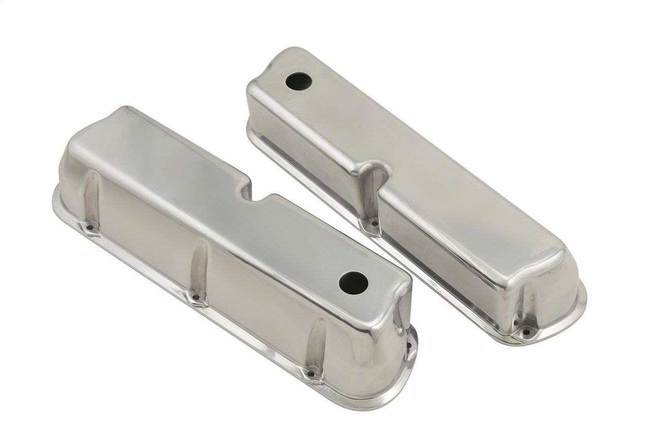 Mr. Gasket's aluminum valve covers are precision die cast for light weight and a perfect fit. Beautifully polished to a high luster, they are sure to enhance the appearance of any engine compartment. They feature an extended sealing lip to positively locate and secure the gasket and stop it from moving to eliminate oil leaks. Available with plain or ball-milled tops and include a 1 1/4 inch diameter breather hole, except where noted. Packaged two per set.