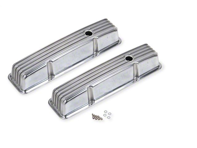 Mr. Gasket's aluminum valve covers are precision die cast for light weight and a perfect fit. Beautifully polished to a high luster, they are sure to enhance the appearance of any engine compartment. They feature an extended sealing lip to positively locate and secure the gasket and stop it from moving to eliminate oil leaks. Available with plain or ball-milled tops and include a 1 1/4 inch diameter breather hole, except where noted. Packaged two per set.