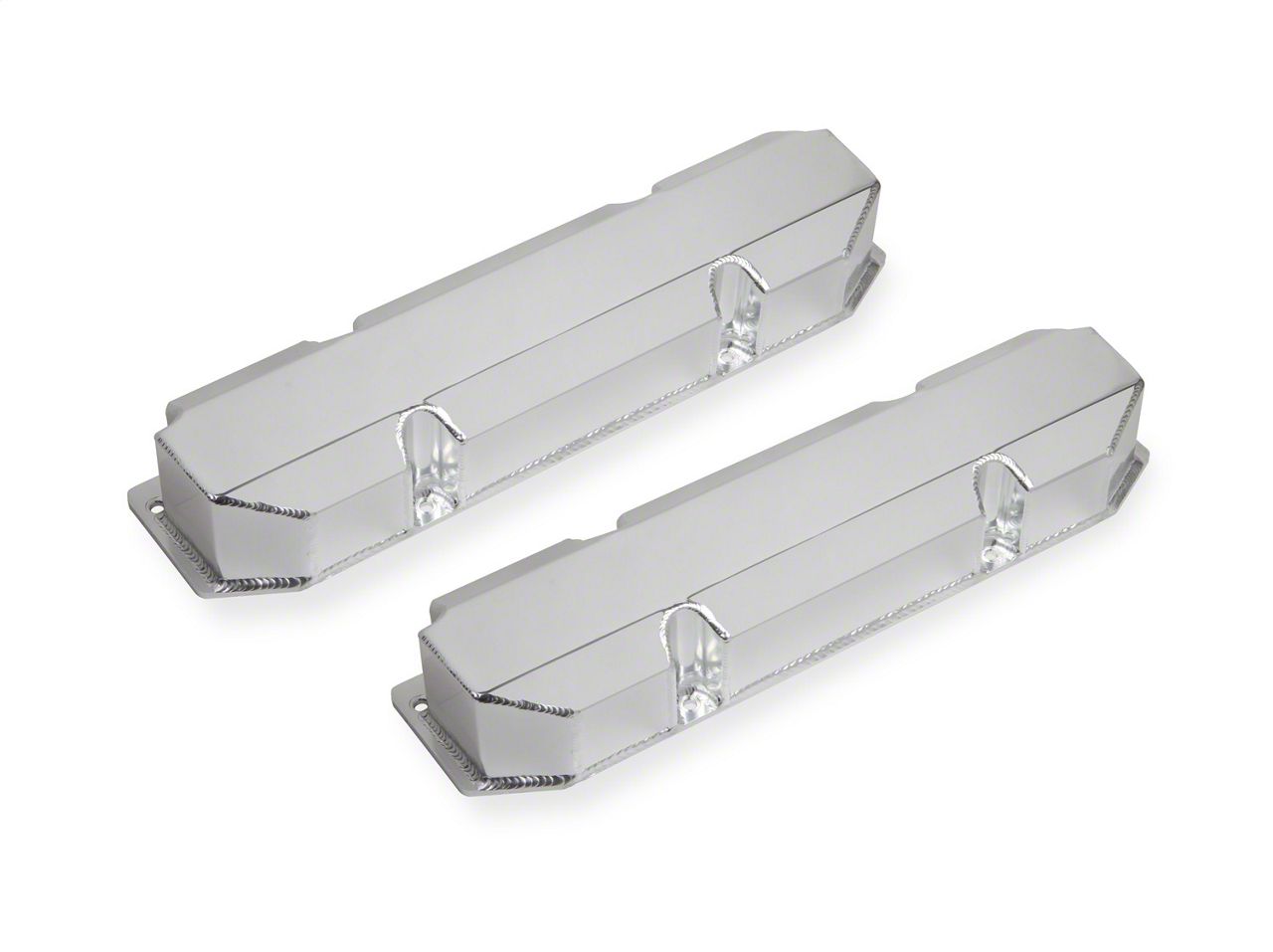 Mr. Gasket's aluminum valve covers are precision die cast for light weight and a perfect fit. Beautifully polished to a high luster, they are sure to enhance the appearance of any engine compartment. They feature an extended sealing lip to positively locate and secure the gasket and stop it from moving to eliminate oil leaks. Available with plain or ball-milled tops and include a 1 1/4 inch diameter breather hole, except where noted. Packaged two per set.