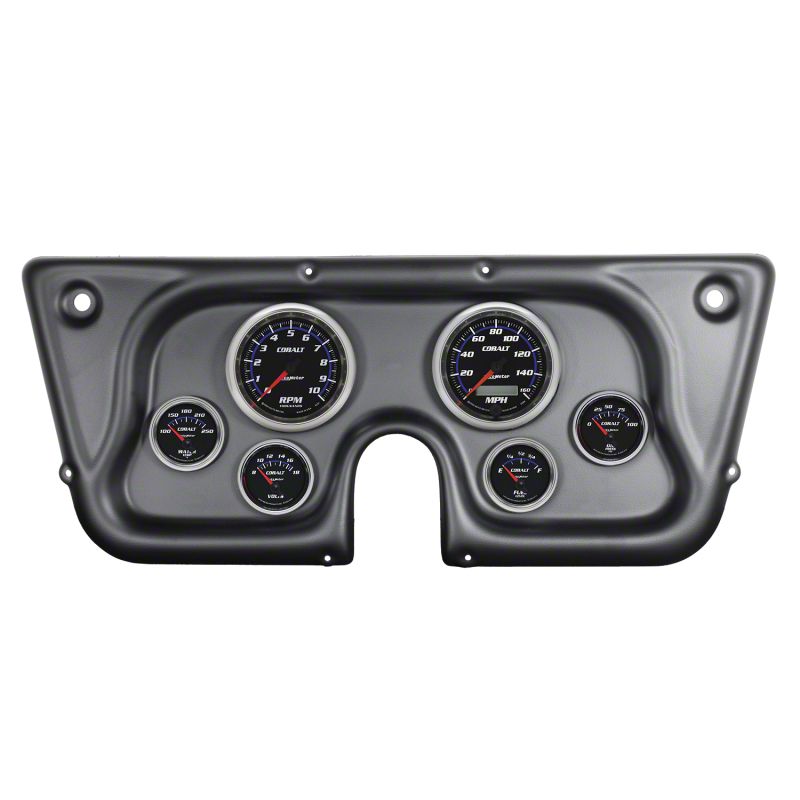 Upgrade your muscle car or classic truck with an AutoMeter direct-fit Cobalt dash kit. Each easy-to-install package includes a durable replacement dash panel and six iconic Cobalt series gauges featuring spun metal dials and bright chrome bezels. White LED through dial lighting ensures optimal visibility during low-light conditions while our easy, no fab installation allows you to preserve the original interior of your classic ride.Having a set of gauges in your car can be very critical, especially if you're one who likes to drive aggressively at the track. Keep an eye on the health of your vehicle with Air fuel ratio (afr), oil pressure, oil temperature, water temperature, and many more gauges. Select from our list of brands like AEM, Turbosmart, Innovate, Autometer, and more!Gauges are an important feature in every project car. By having a proper set of gauges installed in your car, you will be able to read all the vital signs of your engine.Since 1957AutoMeter has been driven to provide performance enthusiasts with the information they need to win. We've revolutionized the way that racers and vehicle builders think about instrumentation and vehicle electronics for more than 60 years. AutoMeter was founded by Vern Westberg in 1957. In the early days, Vern would pour sand castings in his family's backyard, and his sons would help him assemble products in their basement at night.During our 60+ years, we have developed many industry-leading products from our rev control tachometers and quick responding tachometers, to our high technology LCD Competition data acquisition systems. We have set the standard for accuracy, precision, and durability. Today, we have state-of-the-art cellular manufacturing centers, advanced engineering systems, and product technology that is unmatched in the instrumentation marketplace.Company OverviewAutoMeter Products, Inc. is a high technology company based in Sycamore, IL USA, with a state-of-the-art cellular manufacturing operation, world class ISO 9000:TS 16949 Certified Quality System, an advanced engineering team, and product technology that is unmatched in the instrumentation marketplace. In addition to the more commonly known AutoMeter High Performance division focused on performance and racing automotive instrumentation and electronics, AutoMeter also includes four additional branches that cater to specialty markets:AutoMeter Original Equipment Division that works with large clients for the creation of specialty instrumentation for production vehicles.AutoMeter Pro-Cycle Division that designs and produces product geared specifically for the motorcycle industry.AutoMeter Marine Division, which produces instrumentation for water-borne vehicles.AutoMeter Test Equipment Division that produces professional grade automotive battery and electrical chargers and testers for automotive repair and vehicle fleet maintenance.In 2007, AutoMeter expanded its performance family to include two new companies with the acquisition of Stack, Ltd. of England, whose roots are in Formula 1 instrumentation and are famous for their dash displays and data acquisition systems, and Dedenbear Products, a company renowned for throttle stops, delay boxes, and drag racing electronics. AutoMeter is excited about the opportunities presented in these partnerships and are bringing to market several new and exciting designs and technologies including the Ultra-Lite Pro Data Acquisition System, the Dedenbear STS Throttle Stop, and Stack Pro-Control Professional Stepper Motor Gauges.In 2012, AutoMeter expanded once again with the acquisition of ProParts LLC. Born on the high speed ovals of NASCAR and refined on road courses and drag strips around the world, Spek-Pro gauges are some of the most advanced instruments ever conceived. AutoMeter welcomes the ProParts Spek gauges into our ever growing motorsports product line to offer the absolute best features no matter the application.