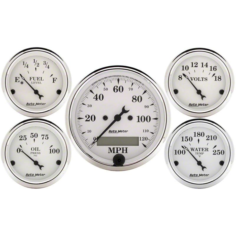 AutoMeter has brought together the most popular gauges into a simple kit. The kit includes a speedometer, water temperature, oil pressure, fuel level, and voltmeter. All senders included where applicable.Having a set of gauges in your car can be very critical, especially if you're one who likes to drive aggressively at the track. Keep an eye on the health of your vehicle with Air fuel ratio (afr), oil pressure, oil temperature, water temperature, and many more gauges. Select from our list of brands like AEM, Turbosmart, Innovate, Autometer, and more!Gauges are an important feature in every project car. By having a proper set of gauges installed in your car, you will be able to read all the vital signs of your engine.Since 1957AutoMeter has been driven to provide performance enthusiasts with the information they need to win. We've revolutionized the way that racers and vehicle builders think about instrumentation and vehicle electronics for more than 60 years. AutoMeter was founded by Vern Westberg in 1957. In the early days, Vern would pour sand castings in his family's backyard, and his sons would help him assemble products in their basement at night.During our 60+ years, we have developed many industry-leading products from our rev control tachometers and quick responding tachometers, to our high technology LCD Competition data acquisition systems. We have set the standard for accuracy, precision, and durability. Today, we have state-of-the-art cellular manufacturing centers, advanced engineering systems, and product technology that is unmatched in the instrumentation marketplace.Company OverviewAutoMeter Products, Inc. is a high technology company based in Sycamore, IL USA, with a state-of-the-art cellular manufacturing operation, world class ISO 9000:TS 16949 Certified Quality System, an advanced engineering team, and product technology that is unmatched in the instrumentation marketplace. In addition to the more commonly known AutoMeter High Performance division focused on performance and racing automotive instrumentation and electronics, AutoMeter also includes four additional branches that cater to specialty markets:AutoMeter Original Equipment Division that works with large clients for the creation of specialty instrumentation for production vehicles.AutoMeter Pro-Cycle Division that designs and produces product geared specifically for the motorcycle industry.AutoMeter Marine Division, which produces instrumentation for water-borne vehicles.AutoMeter Test Equipment Division that produces professional grade automotive battery and electrical chargers and testers for automotive repair and vehicle fleet maintenance.In 2007, AutoMeter expanded its performance family to include two new companies with the acquisition of Stack, Ltd. of England, whose roots are in Formula 1 instrumentation and are famous for their dash displays and data acquisition systems, and Dedenbear Products, a company renowned for throttle stops, delay boxes, and drag racing electronics. AutoMeter is excited about the opportunities presented in these partnerships and are bringing to market several new and exciting designs and technologies including the Ultra-Lite Pro Data Acquisition System, the Dedenbear STS Throttle Stop, and Stack Pro-Control Professional Stepper Motor Gauges.In 2012, AutoMeter expanded once again with the acquisition of ProParts LLC. Born on the high speed ovals of NASCAR and refined on road courses and drag strips around the world, Spek-Pro gauges are some of the most advanced instruments ever conceived. AutoMeter welcomes the ProParts Spek gauges into our ever growing motorsports product line to offer the absolute best features no matter the application.