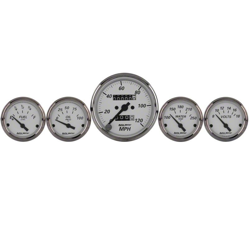 AutoMeter has brought together the most popular gauges into a simple kit. The kit includes a speedometer, water temperature, oil pressure, fuel level, and voltmeter. All senders included where applicable.Having a set of gauges in your car can be very critical, especially if you're one who likes to drive aggressively at the track. Keep an eye on the health of your vehicle with Air fuel ratio (afr), oil pressure, oil temperature, water temperature, and many more gauges. Select from our list of brands like AEM, Turbosmart, Innovate, Autometer, and more!Gauges are an important feature in every project car. By having a proper set of gauges installed in your car, you will be able to read all the vital signs of your engine.Since 1957AutoMeter has been driven to provide performance enthusiasts with the information they need to win. We've revolutionized the way that racers and vehicle builders think about instrumentation and vehicle electronics for more than 60 years. AutoMeter was founded by Vern Westberg in 1957. In the early days, Vern would pour sand castings in his family's backyard, and his sons would help him assemble products in their basement at night.During our 60+ years, we have developed many industry-leading products from our rev control tachometers and quick responding tachometers, to our high technology LCD Competition data acquisition systems. We have set the standard for accuracy, precision, and durability. Today, we have state-of-the-art cellular manufacturing centers, advanced engineering systems, and product technology that is unmatched in the instrumentation marketplace.Company OverviewAutoMeter Products, Inc. is a high technology company based in Sycamore, IL USA, with a state-of-the-art cellular manufacturing operation, world class ISO 9000:TS 16949 Certified Quality System, an advanced engineering team, and product technology that is unmatched in the instrumentation marketplace. In addition to the more commonly known AutoMeter High Performance division focused on performance and racing automotive instrumentation and electronics, AutoMeter also includes four additional branches that cater to specialty markets:AutoMeter Original Equipment Division that works with large clients for the creation of specialty instrumentation for production vehicles.AutoMeter Pro-Cycle Division that designs and produces product geared specifically for the motorcycle industry.AutoMeter Marine Division, which produces instrumentation for water-borne vehicles.AutoMeter Test Equipment Division that produces professional grade automotive battery and electrical chargers and testers for automotive repair and vehicle fleet maintenance.In 2007, AutoMeter expanded its performance family to include two new companies with the acquisition of Stack, Ltd. of England, whose roots are in Formula 1 instrumentation and are famous for their dash displays and data acquisition systems, and Dedenbear Products, a company renowned for throttle stops, delay boxes, and drag racing electronics. AutoMeter is excited about the opportunities presented in these partnerships and are bringing to market several new and exciting designs and technologies including the Ultra-Lite Pro Data Acquisition System, the Dedenbear STS Throttle Stop, and Stack Pro-Control Professional Stepper Motor Gauges.In 2012, AutoMeter expanded once again with the acquisition of ProParts LLC. Born on the high speed ovals of NASCAR and refined on road courses and drag strips around the world, Spek-Pro gauges are some of the most advanced instruments ever conceived. AutoMeter welcomes the ProParts Spek gauges into our ever growing motorsports product line to offer the absolute best features no matter the application.