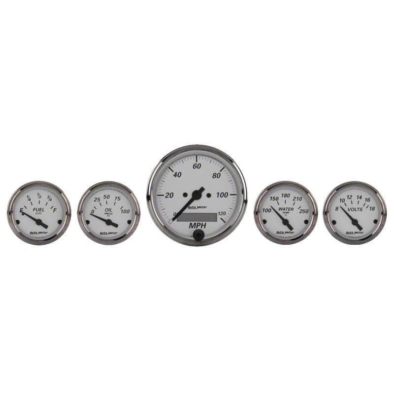 AutoMeter has brought together the most popular gauges into a simple kit. The kit includes a speedometer, water temperature, oil pressure, fuel level, and voltmeter. All senders included where applicable.Having a set of gauges in your car can be very critical, especially if you're one who likes to drive aggressively at the track. Keep an eye on the health of your vehicle with Air fuel ratio (afr), oil pressure, oil temperature, water temperature, and many more gauges. Select from our list of brands like AEM, Turbosmart, Innovate, Autometer, and more!Gauges are an important feature in every project car. By having a proper set of gauges installed in your car, you will be able to read all the vital signs of your engine.Since 1957AutoMeter has been driven to provide performance enthusiasts with the information they need to win. We've revolutionized the way that racers and vehicle builders think about instrumentation and vehicle electronics for more than 60 years. AutoMeter was founded by Vern Westberg in 1957. In the early days, Vern would pour sand castings in his family's backyard, and his sons would help him assemble products in their basement at night.During our 60+ years, we have developed many industry-leading products from our rev control tachometers and quick responding tachometers, to our high technology LCD Competition data acquisition systems. We have set the standard for accuracy, precision, and durability. Today, we have state-of-the-art cellular manufacturing centers, advanced engineering systems, and product technology that is unmatched in the instrumentation marketplace.Company OverviewAutoMeter Products, Inc. is a high technology company based in Sycamore, IL USA, with a state-of-the-art cellular manufacturing operation, world class ISO 9000:TS 16949 Certified Quality System, an advanced engineering team, and product technology that is unmatched in the instrumentation marketplace. In addition to the more commonly known AutoMeter High Performance division focused on performance and racing automotive instrumentation and electronics, AutoMeter also includes four additional branches that cater to specialty markets:AutoMeter Original Equipment Division that works with large clients for the creation of specialty instrumentation for production vehicles.AutoMeter Pro-Cycle Division that designs and produces product geared specifically for the motorcycle industry.AutoMeter Marine Division, which produces instrumentation for water-borne vehicles.AutoMeter Test Equipment Division that produces professional grade automotive battery and electrical chargers and testers for automotive repair and vehicle fleet maintenance.In 2007, AutoMeter expanded its performance family to include two new companies with the acquisition of Stack, Ltd. of England, whose roots are in Formula 1 instrumentation and are famous for their dash displays and data acquisition systems, and Dedenbear Products, a company renowned for throttle stops, delay boxes, and drag racing electronics. AutoMeter is excited about the opportunities presented in these partnerships and are bringing to market several new and exciting designs and technologies including the Ultra-Lite Pro Data Acquisition System, the Dedenbear STS Throttle Stop, and Stack Pro-Control Professional Stepper Motor Gauges.In 2012, AutoMeter expanded once again with the acquisition of ProParts LLC. Born on the high speed ovals of NASCAR and refined on road courses and drag strips around the world, Spek-Pro gauges are some of the most advanced instruments ever conceived. AutoMeter welcomes the ProParts Spek gauges into our ever growing motorsports product line to offer the absolute best features no matter the application.