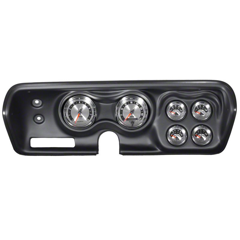 Upgrade your muscle car or classic truck with an AutoMeter direct-fit American Muscle dash kit. Each easy-to-install package includes a durable replacement dash panel and six iconic American Muscle series gauges featuring spun metal dials and bright chrome bezels. White LED through dial lighting ensures optimal visibility during low-light conditions while our easy, no fab installation allows you to preserve the original interior of your classic ride.Having a set of gauges in your car can be very critical, especially if you're one who likes to drive aggressively at the track. Keep an eye on the health of your vehicle with Air fuel ratio (afr), oil pressure, oil temperature, water temperature, and many more gauges. Select from our list of brands like AEM, Turbosmart, Innovate, Autometer, and more!Gauges are an important feature in every project car. By having a proper set of gauges installed in your car, you will be able to read all the vital signs of your engine.Since 1957AutoMeter has been driven to provide performance enthusiasts with the information they need to win. We've revolutionized the way that racers and vehicle builders think about instrumentation and vehicle electronics for more than 60 years. AutoMeter was founded by Vern Westberg in 1957. In the early days, Vern would pour sand castings in his family's backyard, and his sons would help him assemble products in their basement at night.During our 60+ years, we have developed many industry-leading products from our rev control tachometers and quick responding tachometers, to our high technology LCD Competition data acquisition systems. We have set the standard for accuracy, precision, and durability. Today, we have state-of-the-art cellular manufacturing centers, advanced engineering systems, and product technology that is unmatched in the instrumentation marketplace.Company OverviewAutoMeter Products, Inc. is a high technology company based in Sycamore, IL USA, with a state-of-the-art cellular manufacturing operation, world class ISO 9000:TS 16949 Certified Quality System, an advanced engineering team, and product technology that is unmatched in the instrumentation marketplace. In addition to the more commonly known AutoMeter High Performance division focused on performance and racing automotive instrumentation and electronics, AutoMeter also includes four additional branches that cater to specialty markets:AutoMeter Original Equipment Division that works with large clients for the creation of specialty instrumentation for production vehicles.AutoMeter Pro-Cycle Division that designs and produces product geared specifically for the motorcycle industry.AutoMeter Marine Division, which produces instrumentation for water-borne vehicles.AutoMeter Test Equipment Division that produces professional grade automotive battery and electrical chargers and testers for automotive repair and vehicle fleet maintenance.In 2007, AutoMeter expanded its performance family to include two new companies with the acquisition of Stack, Ltd. of England, whose roots are in Formula 1 instrumentation and are famous for their dash displays and data acquisition systems, and Dedenbear Products, a company renowned for throttle stops, delay boxes, and drag racing electronics. AutoMeter is excited about the opportunities presented in these partnerships and are bringing to market several new and exciting designs and technologies including the Ultra-Lite Pro Data Acquisition System, the Dedenbear STS Throttle Stop, and Stack Pro-Control Professional Stepper Motor Gauges.In 2012, AutoMeter expanded once again with the acquisition of ProParts LLC. Born on the high speed ovals of NASCAR and refined on road courses and drag strips around the world, Spek-Pro gauges are some of the most advanced instruments ever conceived. AutoMeter welcomes the ProParts Spek gauges into our ever growing motorsports product line to offer the absolute best features no matter the application.