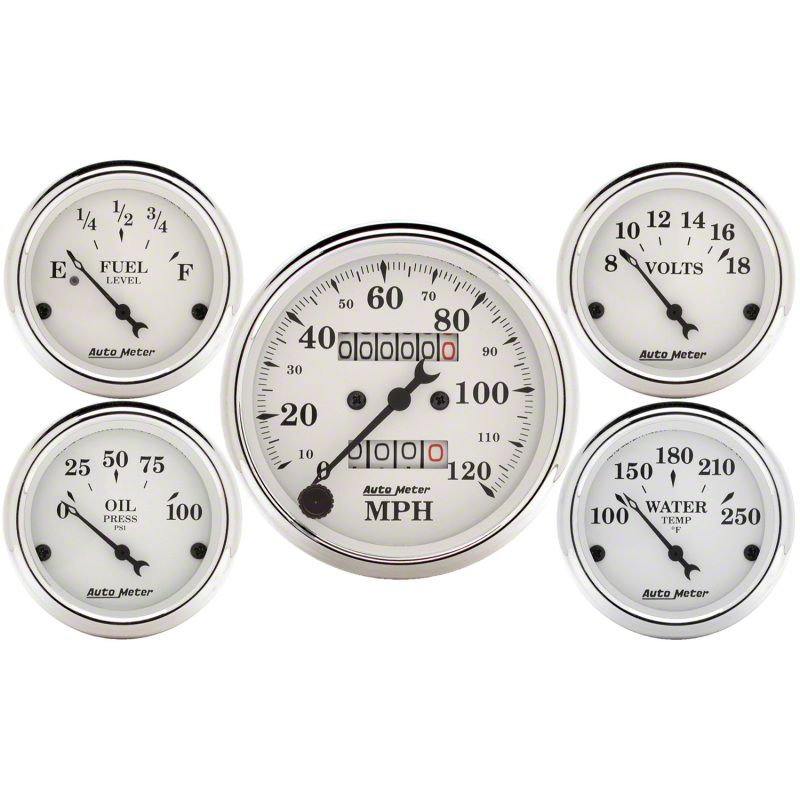 AutoMeter has brought together the most popular gauges into a simple kit. The kit includes a speedometer, water temperature, oil pressure, fuel level, and voltmeter. All senders included where applicable.Having a set of gauges in your car can be very critical, especially if you're one who likes to drive aggressively at the track. Keep an eye on the health of your vehicle with Air fuel ratio (afr), oil pressure, oil temperature, water temperature, and many more gauges. Select from our list of brands like AEM, Turbosmart, Innovate, Autometer, and more!Gauges are an important feature in every project car. By having a proper set of gauges installed in your car, you will be able to read all the vital signs of your engine.Since 1957AutoMeter has been driven to provide performance enthusiasts with the information they need to win. We've revolutionized the way that racers and vehicle builders think about instrumentation and vehicle electronics for more than 60 years. AutoMeter was founded by Vern Westberg in 1957. In the early days, Vern would pour sand castings in his family's backyard, and his sons would help him assemble products in their basement at night.During our 60+ years, we have developed many industry-leading products from our rev control tachometers and quick responding tachometers, to our high technology LCD Competition data acquisition systems. We have set the standard for accuracy, precision, and durability. Today, we have state-of-the-art cellular manufacturing centers, advanced engineering systems, and product technology that is unmatched in the instrumentation marketplace.Company OverviewAutoMeter Products, Inc. is a high technology company based in Sycamore, IL USA, with a state-of-the-art cellular manufacturing operation, world class ISO 9000:TS 16949 Certified Quality System, an advanced engineering team, and product technology that is unmatched in the instrumentation marketplace. In addition to the more commonly known AutoMeter High Performance division focused on performance and racing automotive instrumentation and electronics, AutoMeter also includes four additional branches that cater to specialty markets:AutoMeter Original Equipment Division that works with large clients for the creation of specialty instrumentation for production vehicles.AutoMeter Pro-Cycle Division that designs and produces product geared specifically for the motorcycle industry.AutoMeter Marine Division, which produces instrumentation for water-borne vehicles.AutoMeter Test Equipment Division that produces professional grade automotive battery and electrical chargers and testers for automotive repair and vehicle fleet maintenance.In 2007, AutoMeter expanded its performance family to include two new companies with the acquisition of Stack, Ltd. of England, whose roots are in Formula 1 instrumentation and are famous for their dash displays and data acquisition systems, and Dedenbear Products, a company renowned for throttle stops, delay boxes, and drag racing electronics. AutoMeter is excited about the opportunities presented in these partnerships and are bringing to market several new and exciting designs and technologies including the Ultra-Lite Pro Data Acquisition System, the Dedenbear STS Throttle Stop, and Stack Pro-Control Professional Stepper Motor Gauges.In 2012, AutoMeter expanded once again with the acquisition of ProParts LLC. Born on the high speed ovals of NASCAR and refined on road courses and drag strips around the world, Spek-Pro gauges are some of the most advanced instruments ever conceived. AutoMeter welcomes the ProParts Spek gauges into our ever growing motorsports product line to offer the absolute best features no matter the application.