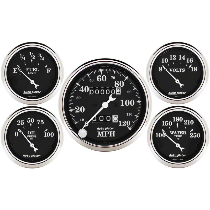 AutoMeter has brought together the most popular gauges into a simple kit. The kit includes a speedometer, water temperature, oil pressure, fuel level, and voltmeter. All senders included where applicable.Having a set of gauges in your car can be very critical, especially if you're one who likes to drive aggressively at the track. Keep an eye on the health of your vehicle with Air fuel ratio (afr), oil pressure, oil temperature, water temperature, and many more gauges. Select from our list of brands like AEM, Turbosmart, Innovate, Autometer, and more!Gauges are an important feature in every project car. By having a proper set of gauges installed in your car, you will be able to read all the vital signs of your engine.Since 1957AutoMeter has been driven to provide performance enthusiasts with the information they need to win. We've revolutionized the way that racers and vehicle builders think about instrumentation and vehicle electronics for more than 60 years. AutoMeter was founded by Vern Westberg in 1957. In the early days, Vern would pour sand castings in his family's backyard, and his sons would help him assemble products in their basement at night.During our 60+ years, we have developed many industry-leading products from our rev control tachometers and quick responding tachometers, to our high technology LCD Competition data acquisition systems. We have set the standard for accuracy, precision, and durability. Today, we have state-of-the-art cellular manufacturing centers, advanced engineering systems, and product technology that is unmatched in the instrumentation marketplace.Company OverviewAutoMeter Products, Inc. is a high technology company based in Sycamore, IL USA, with a state-of-the-art cellular manufacturing operation, world class ISO 9000:TS 16949 Certified Quality System, an advanced engineering team, and product technology that is unmatched in the instrumentation marketplace. In addition to the more commonly known AutoMeter High Performance division focused on performance and racing automotive instrumentation and electronics, AutoMeter also includes four additional branches that cater to specialty markets:AutoMeter Original Equipment Division that works with large clients for the creation of specialty instrumentation for production vehicles.AutoMeter Pro-Cycle Division that designs and produces product geared specifically for the motorcycle industry.AutoMeter Marine Division, which produces instrumentation for water-borne vehicles.AutoMeter Test Equipment Division that produces professional grade automotive battery and electrical chargers and testers for automotive repair and vehicle fleet maintenance.In 2007, AutoMeter expanded its performance family to include two new companies with the acquisition of Stack, Ltd. of England, whose roots are in Formula 1 instrumentation and are famous for their dash displays and data acquisition systems, and Dedenbear Products, a company renowned for throttle stops, delay boxes, and drag racing electronics. AutoMeter is excited about the opportunities presented in these partnerships and are bringing to market several new and exciting designs and technologies including the Ultra-Lite Pro Data Acquisition System, the Dedenbear STS Throttle Stop, and Stack Pro-Control Professional Stepper Motor Gauges.In 2012, AutoMeter expanded once again with the acquisition of ProParts LLC. Born on the high speed ovals of NASCAR and refined on road courses and drag strips around the world, Spek-Pro gauges are some of the most advanced instruments ever conceived. AutoMeter welcomes the ProParts Spek gauges into our ever growing motorsports product line to offer the absolute best features no matter the application.