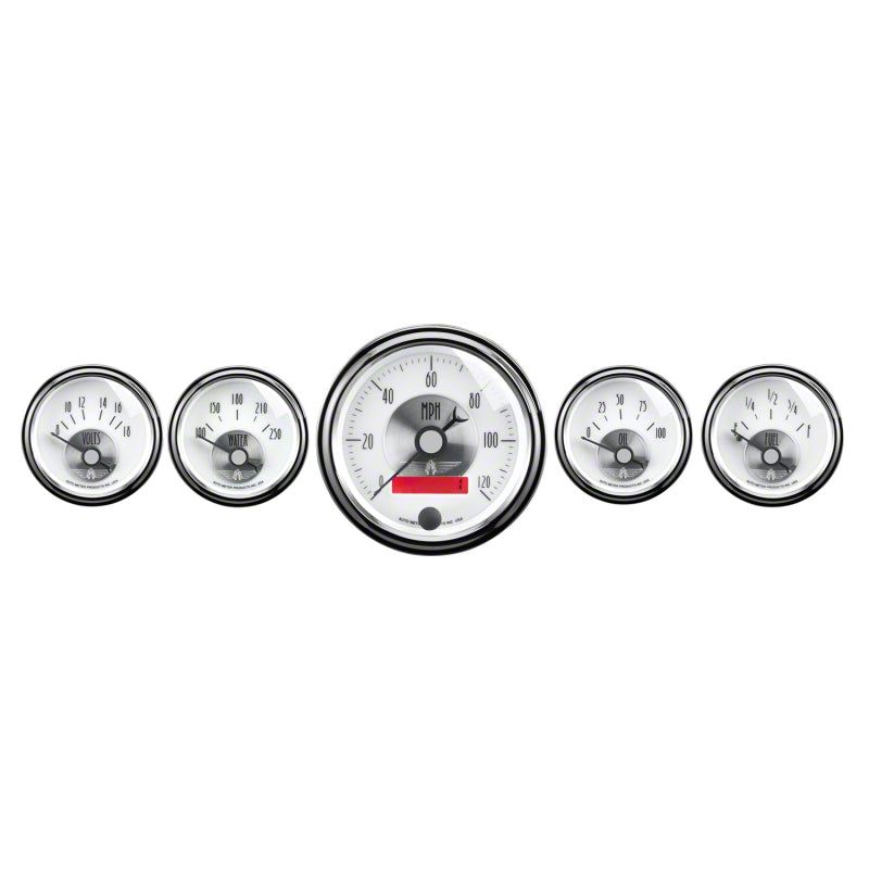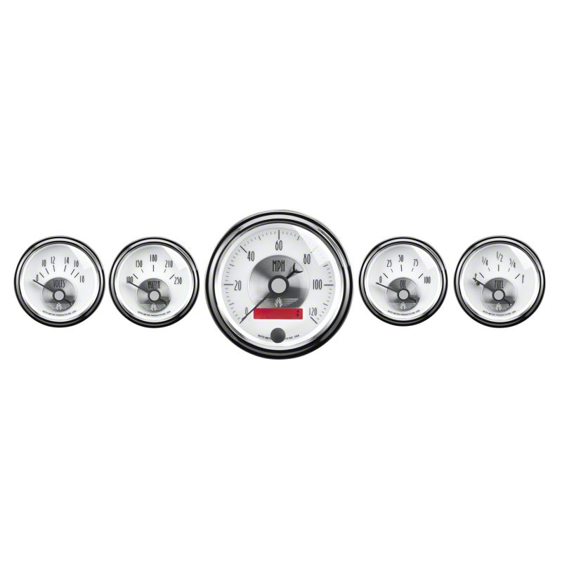 AutoMeter has brought together the most popular gauges into a simple kit. The kit includes a speedometer, water temperature, oil pressure, fuel level, and voltmeter. All senders included where applicable.Having a set of gauges in your car can be very critical, especially if you're one who likes to drive aggressively at the track. Keep an eye on the health of your vehicle with Air fuel ratio (afr), oil pressure, oil temperature, water temperature, and many more gauges. Select from our list of brands like AEM, Turbosmart, Innovate, Autometer, and more!Gauges are an important feature in every project car. By having a proper set of gauges installed in your car, you will be able to read all the vital signs of your engine.Since 1957 AutoMeter has been driven to provide performance enthusiasts with the information they need to win. We've revolutionized the way that racers and vehicle builders think about instrumentation and vehicle electronics for more than 60 years. AutoMeter was founded by Vern Westberg in 1957. In the early days, Vern would pour sand castings in his family's backyard, and his sons would help him assemble products in their basement at night.During our 60+ years, we have developed many industry-leading products from our rev control tachometers and quick responding tachometers, to our high technology LCD Competition data acquisition systems. We have set the standard for accuracy, precision, and durability. Today, we have state-of-the-art cellular manufacturing centers, advanced engineering systems, and product technology that is unmatched in the instrumentation marketplace.Company Overview AutoMeter Products, Inc. is a high technology company based in Sycamore, IL USA, with a state-of-the-art cellular manufacturing operation, world class ISO 9000:TS 16949 Certified Quality System, an advanced engineering team, and product technology that is unmatched in the instrumentation marketplace. In addition to the more commonly known AutoMeter High Performance division focused on performance and racing automotive instrumentation and electronics, AutoMeter also includes four additional branches that cater to specialty markets:AutoMeter Original Equipment Division that works with large clients for the creation of specialty instrumentation for production vehicles. AutoMeter Pro-Cycle Division that designs and produces product geared specifically for the motorcycle industry. AutoMeter Marine Division, which produces instrumentation for water-borne vehicles. AutoMeter Test Equipment Division that produces professional grade automotive battery and electrical chargers and testers for automotive repair and vehicle fleet maintenance.In 2007, AutoMeter expanded its performance family to include two new companies with the acquisition of Stack, Ltd. of England, whose roots are in Formula 1 instrumentation and are famous for their dash displays and data acquisition systems, and Dedenbear Products, a company renowned for throttle stops, delay boxes, and drag racing electronics. AutoMeter is excited about the opportunities presented in these partnerships and are bringing to market several new and exciting designs and technologies including the Ultra-Lite Pro Data Acquisition System, the Dedenbear STS Throttle Stop, and Stack Pro-Control Professional Stepper Motor Gauges.In 2012, AutoMeter expanded once again with the acquisition of ProParts LLC. Born on the high speed ovals of NASCAR and refined on road courses and drag strips around the world, Spek-Pro gauges are some of the most advanced instruments ever conceived. AutoMeter welcomes the ProParts Spek gauges into our ever growing motorsports product line to offer the absolute best features no matter the application.