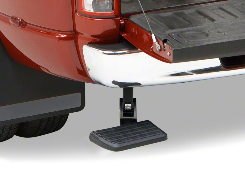 Go ahead and step on it. Bedstep is a real time saver. Not to mention knee and back saver. Strong and rugged, this non-slip, retractable bumper step quickly flips down with the nudge of a foot providing a faster, easier and safer way to load or unload your pickups cargo. Supports up to 300 lbs. Frame mounts under the rear bumper so it works even with an open tailgate or when towing.