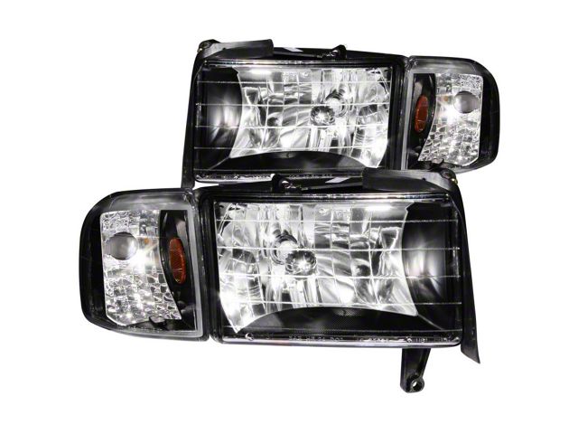 ANZO 1994-2001 Dodge Ram Crystal Headlights Black