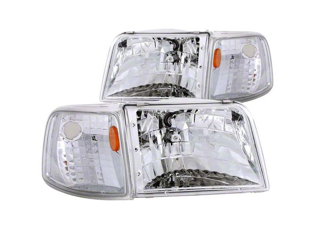 ANZO 1993-1997 Ford Ranger Crystal Headlights Chrome w/ Corner Lights 2pc