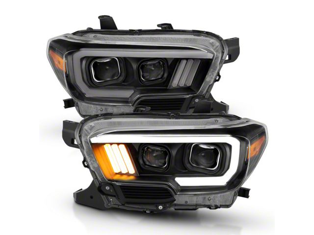 ANZO 2016-2017 Toyota Tacoma Projector Headlights w/ Plank Style Design Black/Amber w/ DRL
