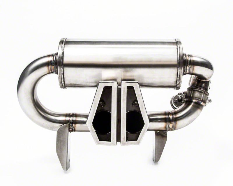 The Agency Power exhaust for the Can-Am X3 is all made here in Arizona, USA. After 3D modeling, prototypes, and a proven JIG was completed, the production of this exhaust was commenced to support all Can-Am Maverick X3 Turbo models. It is manufactured from T304 stainless steel tubing that is precision TIG welded. It features stainless steel mounting brackets and the spring retainer to use the factory or aftermarket catalytic converter pipe. The unique AP tips are also constructed from 18 gauge, stainless steel that are bolted to the exhaust with an integrated spark arrestor system. The dual tip design works with the factory plastic exhaust shielding. A custom Magnaflow muffler was designed for this project to give a nice tone when the exhaust valve is closed. Exhaust gases go through the resonator muffler and out of the left hand side tip. When the valve is opened, exhaust gases bypass the muffler and exit straight through the right side exhaust tip. To operate the valvetronic exhaust, a custom made plug and play switch by XTC Powersports is included. This switch features color matching LEDs for the on and off position. It is designed to be mounted on the center dash or the center console. If you mount it up on the center dash by the start and stop button, the switch plugs into an existing port already available. If you mount it on the center console, the CANBUS bar is located under this trim to easily tie in the power and ground. The valve operates using vacuum pressure. Each kit includes a vacuum block that is fitted to the stock intake manifold. Here you connect the solenoid that is operated by the switch to open and close the valve. With the exhaust valve open, you can now hear the turbo spool up as you accelerate through the RPMs.