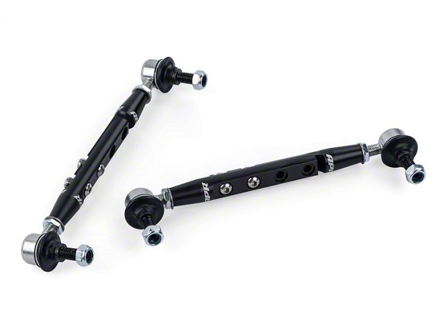 APR's Roll-Control Front Stabilizer Bar End Links improve handling and response through the use of replaceable and swappable ball joints, intended for street use. The end links offer a great range of adjustability in both connection geometry and height, allowing elimination of pre-loading and correction of stabilizer bar geometry. This is a necessary upgrade when altering the factory suspension components to allow correct operation and maximum performance.