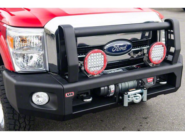 Modern in styling yet distinctively ARB in heritage, these Modular Bumpers are truly innovative and utilize a modular design. Three distinct configurations are available for select Chevrolet, Ford and Ram trucks, allowing for customization to meet individual needs or preferences. The integrated features were designed from the ground up as shown by the unique press formed fog light housings, the ability to mount a variety of winches (up to a Warn 16.5ti) within the bumper and our proprietary matte black Integrit(TM) finish powder coat. Modular Bumpers configurations include a base style bumper replacement which is an ideal winch platform. From there, you can select the Sahara style which adds an upright hoop to guard the truck's grille and critical components. Finally, the Full Deluxe Modular Bumper adds wing frames providing the highest level of protection for the truck and occupants.