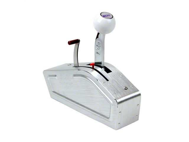 The Pro Ratchet shifter is one of our most popular and easiest to operate race shifters. Features include positive ratcheting design that self-centers the handle after each shift giving you maximum clearance behind the shifter and will not allow you to miss a shift by over-shifting a gear. The reverse lockout feature only requires one hand to operate and meets both NHRA and IHRA safety regulations for racing. Other features include a neutral safety switch, backup light switch, along with a brushed aluminum cover. This shifter includes a classic white shift knob with the B&M logo, a 5-foot long Super-duty shift cable, gear indicator, cable brackets and levers for use with most popular 3-speed transmissions. Comes with all necessary hardware and detailed instructions for an easy at home installation. Notes: Ford AOD transmissions will require installation kit #40496, AODE and 4R70W will require installation kit #40504, E40D and 4R100 will require kit #40505, GM 4L60E - 4L80E transmissions with PRNDL switch will require installation kit #70499. Overall dimensions - 10.75L x 2.9W x 9.25H
