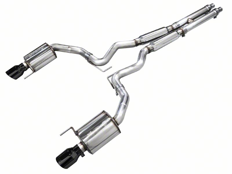 Presenting the AWE Touring Edition Cat Back Exhaust for the Ford S650 Mustang GT. The Touring Edition features AWE's patented drone-killing solution, 180 Technology, which eliminates drone without the use of packing material, while offering all the power of straight pipes, minus the drone. The AWE Touring Edition features a full 3" design with modular, slip-fit inlet adapters to facilitate the factory headers while also being adaptable to aftermarket headers via a removable neck-down front section. And thanks to AWE's precision H-pipe, your 5.0L V8 will produce a deep, rich muscle tone with minimal rasp (unlike an X-pipe). Each Cat Back option also features straight-through bullet-style resonators in the mid pipes to further defeat rasp - these are especially helpful when upgraded headers are introduced. Power to the pavement on an otherwise stock vehicle is an impressive dyno-verified gain of +12 hp and +10 lb-ft of torque at the wheels. Bringing up the rear are dual 4.5" slash-cut, double-walled tips available in chrome silver or diamond black. And if you ever want to dial the volume up, AWE makes it easy with conversion kits, so you can swap to the rowdier Track Edition without purchasing a whole other kit. All this plus 100% 50 state emissions compliance, AWE's Fitment Guarantee, No Check Engine Light Guarantee, and the AWE Lifetime Warranty.