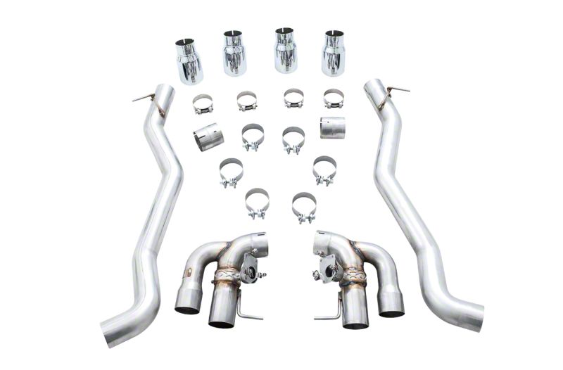 In axle-back form, the SwitchPath retains the M5's factory mid-section, coming in right at the rear axle. The AWE SwitchPath Axle Back Exhaust maintains a 3" diameter, shaves weight from the rear, and retains the factory valve behavior. Available separately are the AWE Performance Mid Pipes to replace the factory mid section with a 3" stainless steel X-pipe, mating to the factory Axle Back (or AWE Axle Back, to make a full cat back). And if you're not ready to do the mid-pipes, no sweat - AWE engineered the Exhaust Suite for the M5 as a completely modular configuration that allows you to do just that, at any time. Simply add the desired configuration to your cart, and roar away. All tip options are AWE's 4" slash-cut design, and include the AWE logo and double-walling to ensure a mirror finish even under hard usage. All tips are individually adjustable, allowing depth into the bumper to be set according to personal taste.Important fitment notes: If you're equipping the Performance Mid Pipes or an Axle Back, cutting will be required. The Performance Mid Pipes + Axle Back installed together will not require cutting.