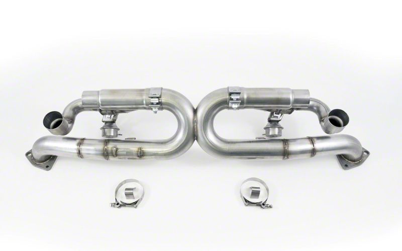 This is the finest exhaust available for the PSE equipped Porsche 991 Carrera and Carrera 4. Period. The AWE SwitchPath Exhaust for the Porsche 991 is for those looking to increase power and bring out the note of their 3.4L power plant, without turning their backs on perfect daily-drivability and Porsche sophistication. The AWE Porsche 991 SwitchPath Exhaust includes integrated valves designed to afford drivers the best of both worlds: A Track Edition Exhaust and a Touring Edition Exhaust, all in one. The AWE Porsche 991 SwitchPath Exhaust responds to the exhaust valve position commands sent from your Porsche's ECU dependent on your throttle input. This means that the AWE Porsche 991 SwitchPath Exhaust will transform from "Track" (The SwitchPath valve directs exhaust gasses away from the side mufflers, for Cup Car levels of "announcement") to "Touring" (The SwitchPath valve closes, routing exhaust gasses through the stock side mufflers, for a sophisticated, signature AWE tone, at a volume slightly above stock). Exhaust volume change matches the driving style: Aggressive throttle input elicits aggressive exhaust volume; tame throttle input elicits tame exhaust volume. All PSE console button controls are completely retained. This system was developed first, on a PDK car. The exhaust was created to be 100% PDK friendly. In normal "non-sport-mode" this system will remain 100% drone-free. And better still, none of the components of our AWE Porsche 991 SwitchPath Exhaust affect or alter any of the emissions devices on the vehicle, and therefore this exhaust is fully legal for street use. This edition retains the factory Porsche tips, so you can keep that rear looking stealth. This is the exhaust You've been waiting for, only from AWE.