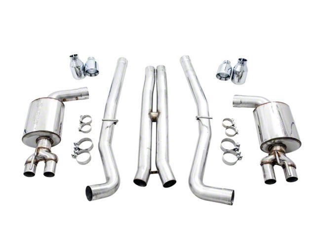 Touring Edition Exhaust: The Touring Edition is a full 3" straight-through stainless steel Catback configuration capable of delivering optimal power while remaining drone-free throughout the entire rev range. Featuring a precision-engineered H-pipe and AWE's patented drone-canceling solution, 180 Technology®, the Touring Edition delivers deep, rich exhaust notes that coax you to redline. Catering to the feigns of big power, the Touring Edition features engineered provisions to accommodate larger, high performance driveshafts and differentials. Sound Perfection: AWE 180 Technology®.