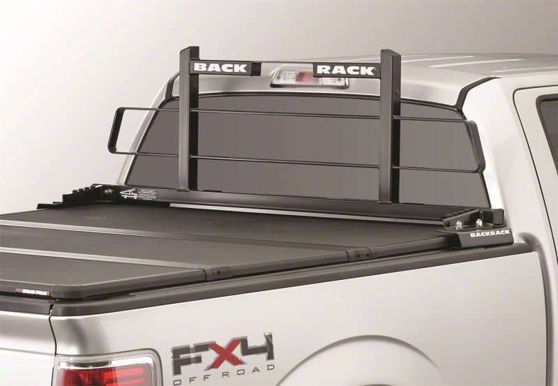 Back Rack Cab Guard by BackRack(TM). BackRack's cab guard protectors mount to existing stake pockets at the front of your bed to protect your cab from damage caused by large, heavy cargo that may shift forward. For cargo such as small pipework, the "Safety Rack" comes with a welded criss-cross center grid to give you the most complete protection. Reinforced steel construction ensures high strength and rigidity, and a protective layer of black powder coat resists scratches, chips, and corrosion.