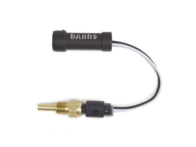 Fluid Temperature sensor with 1/8 NPT or 3/8 Threads. 0-300 deg F range. The enclosed sensor element is ideal for fluid temperature measurements such as oil, coolant, and more. Includes plug and play adapter for Banks 4-Ch Analog Module. Works with pre-defined configurations in iDash for quick setup. Fluid Temperature sensor with 1/8 NPT Threads. 0-300 deg F range.