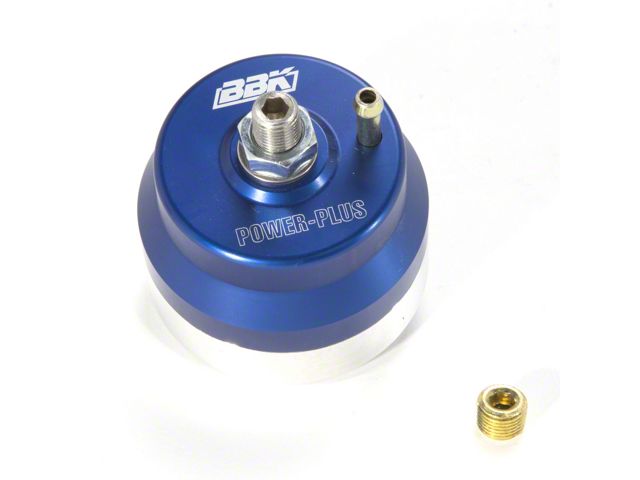 BBK billet fuel pressure regulators are a great way to tune your EFI vehicle to obtain optimum air / fuel ratios and achieve maximum horsepower with the simple adjustment screw located on top. Each BBK Performance fuel pressure regulator is made from high quality CNC Machined billet aluminum and is hand assembled and pressure tested with a precision leak free diaphragm that will allow fuel pressure adjustment to approximately 65psi. Every BBK Performance fuel pressure regulator is a direct replacements for your stock factory OEM pre set regulator and offer the best performance and value. All units have an anodized finish for great looks and long lasting finish.