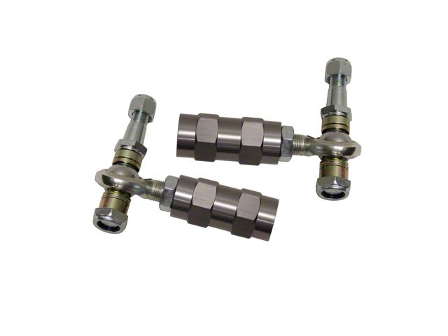 The effect of bump steer is for the wheels to toe-in or toe-out when the suspension moves up or down. Bump steer is undesirable because the suspension is steering the car instead of the driver. To fix bump steer especially when lowering a car, you need to alter the height of the outer tie-rod relative to the steering rack with adjustable tie-rod ends, also known as a bump steer kit. BBK Performance Mustang Bump Steer Kits are available to fit 1979-93, 1994-04 and 2005-14 Ford Mustangs. These BBK Bump steer Kits will correct the front geometry of the Mustang suspension after you have lowered the it with a Mustang lowering spring kit. This bump steer kit will offer improved steering and better handling. These kits can also be used to replace stock factory tie rod ends that wear out instead of replacing the ball joints.