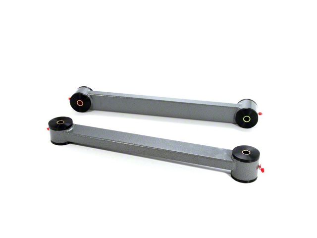 Replace the flimsy factory live axle Mustang rear control arms with a set of these popular BBK rear lower control arms. Manufactured from heavy gauge steel plate using precision welds, these BBK Performance heavy duty Mustang lower control arms will "Hook You Up" on the track and on the street. These rear control arm kits will greatly improve your ET's and 60ft times and best of all they are a direct swap for the factory units. These control arms will give you better handling and cornering characteristics because of their design and super stiff boxed steel tubing and polyurethane bushings.