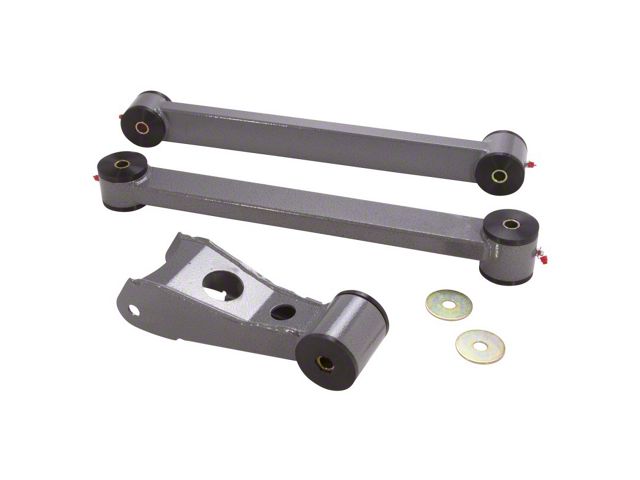 Replace the flimsy factory live axle Mustang rear control arms with a set of these popular BBK rear lower control arms. Manufactured from heavy gauge steel plate using precision welds, these BBK Performance heavy duty Mustang lower control arms will "Hook You Up" on the track and on the street. These rear control arm kits will greatly improve your ET's and 60ft times and best of all they are a direct swap for the factory units. These control arms will give you better handling and cornering characteristics because of their design and super stiff boxed steel tubing and polyurethane bushings.