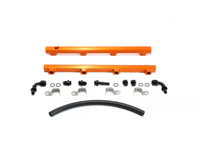 All BBK fuel rail kits are designed and built in house from lightweight billet aluminum that is CNC machined for unequaled fit and finish for popular late model Ford Mustang, LS1 powered GM or Hemi 5.7L or 6.1L powered Dodge or Chrysler. These fuel rails have been developed to work on stock or modified turbo, supercharged or nitrous applications where additional fuel is required to prevent lean out conditions and engine damage. Full size ports at each end for optimal injector fuel supply and a full 1/2 in. inside diameter bore for maximum fuel delivery. Every kit is a direct fit for your application and includes all mounting hardware, connectors, hoses and fuel lines required to supply an ample fuel to your engine. Does NOT fit Dodge RAM Trucks