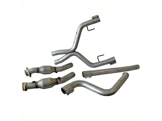 Convert the single exhaust on your 2005-2009 Mustang V6 into a true dual set up with this BBK dual exhaust conversion kit. Combining a GT axle back and the included BBK Performance off road x-pipe will dramatically increase the sound of your Mustang to a roar that will be sure to turn heads. This conversion kit designed to be used with factory or aftermarket shorty style headers and requires the use of an axle back exhaust for Mustang GT and both driver side exhaust hanger brackets (not included). The rear bumper cover will need to be modified to clear the driver's side exhaust tip, or you can use a GT bumper cover. BBK V6 Mustang dual exhaust conversion kits include a full 2.5 in. mandrel bent aluminized steel X pipe and a drivers side tail pipe.