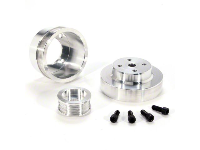 Install a set of BBK performance underdrive pulleys and see an average of 8-15 additional horsepower over the stock pulleys. Under drive pulleys increase engine output by reducing the draw of the engines accessories by slowing them down and reducing the HP they use. Additional and significant performance improvements can be seen by reducing the weight of the pulley versus the original pulley which is why we recommend the BBK CNC Machined billet aluminum pulley kits for maximum horsepower gains. ALL BBK pulley kits are designed as direct bolt on replacements for the current factory pulleys and retain full cooling and charging characteristics. BBK under drive pulley kits are vehicle specific and each kit comes with complete installation instructions and allow the re-use of existing serpentine belts.