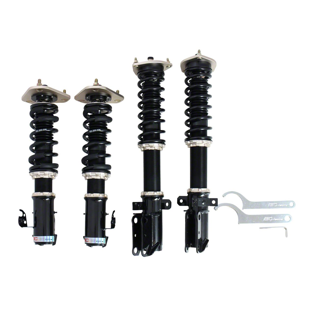 The BC Racing BR Series is our most popular suspension package. Equally at home on street and track the BR Series offers the best of both worlds with ride height and damping adjustability. Damping is adjusted simultaneously and height is adjusted independently of piston and spring stroke. The BR Series offers a minimum 2 inch drop as well as 30 levels of damping adjustment. Assembled by hand in our facility, each application undergoes stringent quality control protocols to deliver the best possible suspension product to the consumer. Our most added value to our customers is the option to customize spring and damping rates to your to your individual preference. The BR Series is not meant as an entry level suspension setup but as a versatile setup that excels across a number of automotive disciplines. Extreme drop separate