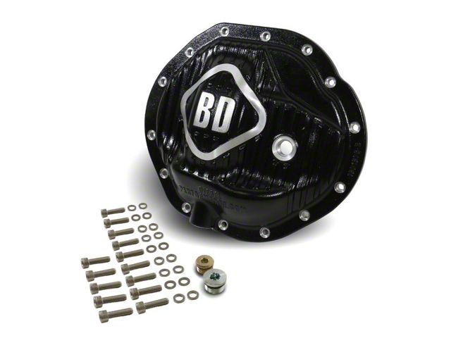 Add a stylish look to your front end with a BD Front Diff cover. Made from cast aluminum, BD differential covers have both internal and external fins for extra cooling plus a sleek curved design. Comes with separate fill and drain ports with stainless steel plugs for easier servicing. Includes stainless steel Allen head cap bolts and magnetic drain plug to help capture suspended material in the oil. Designed to be compatible with aftermarket track bars.