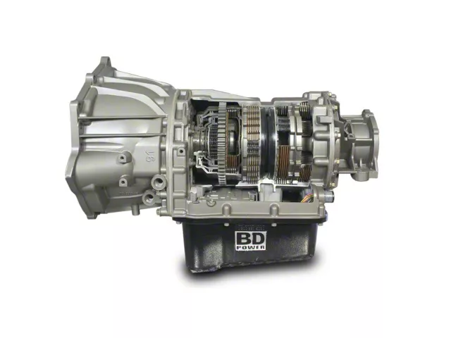 Increase the durability of your drivetrain; Revised oil circuits; Handles up to 300% more power and torque than the stock transmission; Extra clutches and stronger internals; BD rigid aluminum heavy duty transmission pan; Pan adds 3.5qt extra oil capacity; Pan reduces case flex; Pan reduces internal oil leakage; Pan heat-dissipating fins keep temperature down; Pan magnetic drain plug; New convertor lock up valve to boost lock-up pressures; Updated lube; Updated regulator; Updated pressure release spring; 20% more friction surface; High energy clutch material; Added extra frictions; Modified power pistons; New return springs; Increased main line oil pressure; Modified separator plate for short crisp shifts; New A&B trim valves; springs and solenoids; Clutch Count: C1 8; Clutch Count: C2 7; Clutch Count: C3 6; Clutch Count: C4 6; Clutch Count: C5 7