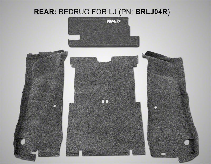 This 100 waterproof, fully custom-molded die cut system is sold as a 3pc front and 4pc rear kit and installs quickly without the need to remove any seat brackets or the center console. Individual pieces can be quickly removed and hosed off after a long day on the trail if desired. The BedRug material dries quickly, resists all harsh chemicals, and will not stain, stink, mold or mildew. The 1/4-inch polypropylene foam kit, with provided heat shields, insulates your interior from road noise and heat.BedRug is well known throughout the aftermarket, a name synonymous with high quality and innovation. Located in Old Hickory, Tennessee, BedRug got its start as a manufacturer of TPO foam composites. TPO foams offer a broad range of performance attributes – ranging from softness and flexibility to thermal stability – it is a closed cell construction, which will not absorb moisture, and is similar to the foam used in life jackets. It can be fabricated into a variety of parts that are suitable for exterior applications. Most importantly, it can be laminated to other substrates – and in BedRug’s case, those additional materials include 100% polypropylene plastic non-woven 'carpet'" and the TPO composite that creates BedTred.