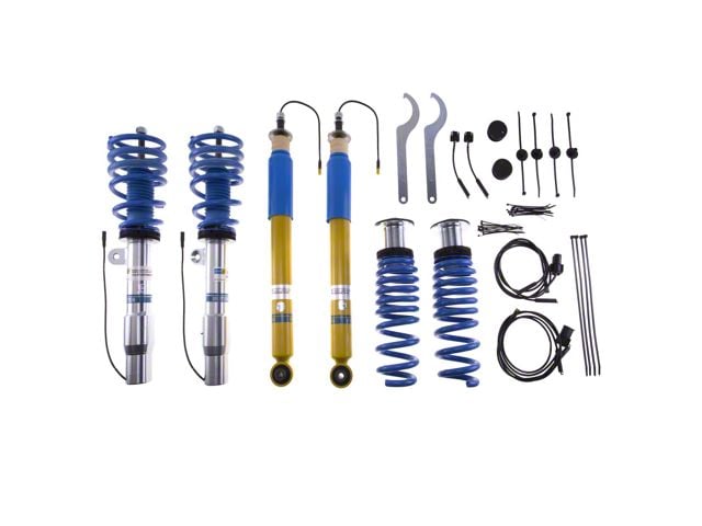 Bilstein B16 (DampTronic) suspension kits feature ride height adjustability with dampers compatible with OE electronic damping systems. All of the active features of the factory electronic suspension, along with the factory controls, will be retained with the installation of this kit. These kits offer monotube performance dampers with matched springs that are tuned for each specific application. The zinc coated and threaded body design will give you the flexibility to find the perfect ride height setting for your intended use while providing unsurpassed protection against the harshest road elements. B16 (DampTronic) suspension kits are made in Germany and feature technology tested on the famed NĂ¼rburgring.