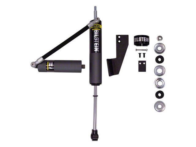 Bilstein B8 8100 reservoir shock absorbers are a large bore 60mm direct fit solution for lifted trucks and SUVs. Constructed from aerospace quality billet components, the large 60mm ID shock body offers a higher oil volume capacity to control heat while tackling rough road surfaces over long distances. Each B8 8100 offers a unique remote or piggyback reservoir solution for an easy, hassle free installation. These shock absorbers feature a monotube design for consistent fade free performance and utilize velocity sensitive digressive valve settings which are tuned for each specific application. The large 60mm piston design offers more comfort and control in all driving conditions. The Bilstein B8 8100 will allow you to tame the terrain in comfort.