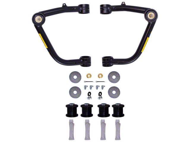 B8 Control Arms are a direct fit upgrade for factory upper control arms on trucks and SUVs. The kit contains a pair of control arms which correct the caster alignment for better straight line stability with lifted suspensions, and the improved pivot angles increase wheel travel and reduce stress on the joints. These strong black powder-coated 4130 chromoly steel arms are a tubular design which allows for more spring and shock clearance and feature greasable polyurethane bushings and heavy duty ball joints for the ideal combination of ride quality and durability with minimal maintenance needed. They come with detailed instructions and all necessary hardware for easy installation and are compatible with all Bilstein shocks and coilover kits. All components are replaceable.