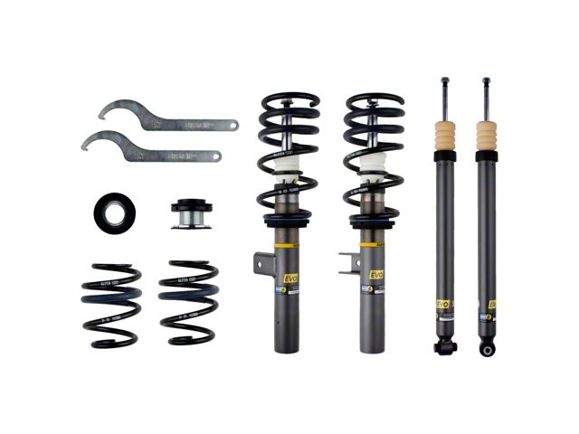 Bilstein EVO Series coilovers are the next step in the evolution of performance suspension tuning. EVO S is a coilover kit built and tuned specifically for everyday street use. Featuring ride height adjustability in an OE quality, direct fit package. Redesigned threaded bodied dampers allow for extreme lowering of up to 70mm. High quality components ensure longevity through every day use while providing a sportier look. Improved handling and ride comfort are achieved through specific application tuning. Bilstein EVO Series suspension kits are designed and built in Germany with technology tested and tuned on the NĂ¼rburgring.