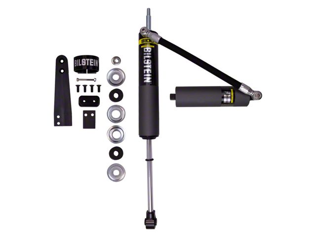 Bilstein B8 8100 reservoir shock absorbers are a large bore 60mm direct fit solution for lifted trucks and SUVs. Constructed from aerospace quality billet components, the large 60mm ID shock body offers a higher oil volume capacity to control heat while tackling rough road surfaces over long distances. Each B8 8100 offers a unique remote or piggyback reservoir solution for an easy, hassle free installation. These shock absorbers feature a monotube design for consistent fade free performance and utilize velocity sensitive digressive valve settings which are tuned for each specific application. The large 60mm piston design offers more comfort and control in all driving conditions. The Bilstein B8 8100 will allow you to tame the terrain in comfort.