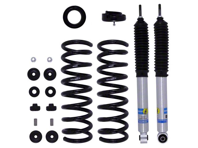 Bilstein B8 5112 suspension kit is a high performance leveling kit which provides more ground clearance, allows for larger tires, and increases wheel travel. The Bilstein B8 5112 suspension kit is for front applications and consists of (2) B8 5100 shock absorbers combined with (2) matched coil springs. This simple yet effective kit will bolt into the factory locations with no modifications. The Bilstein B8 5112 suspension kit provides a smooth and stable ride both on and off-road.