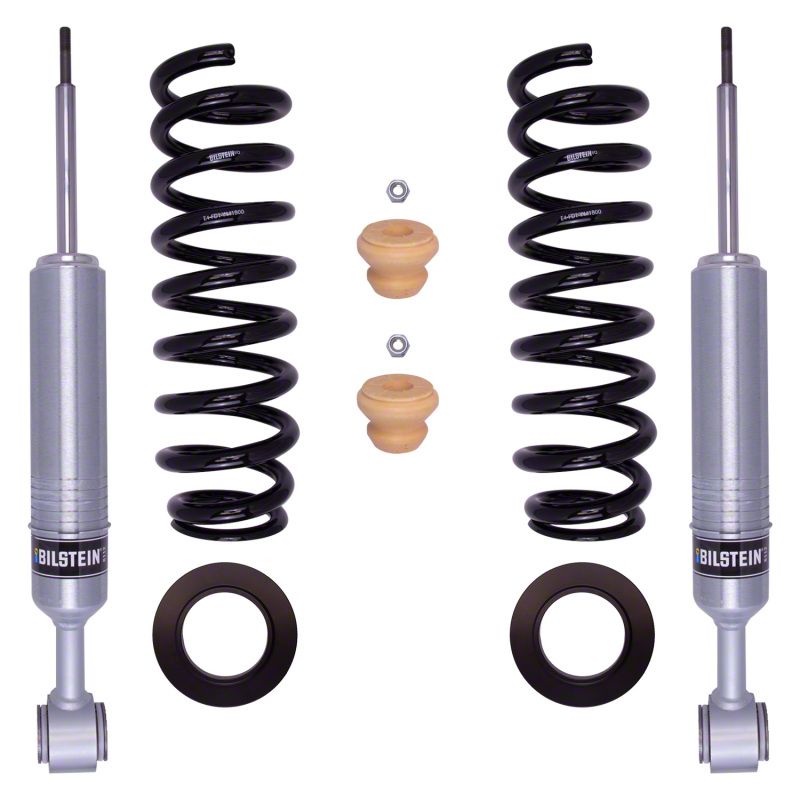 Bilstein B8 6112 leveling kits are designed to provide more ground clearance, allow for larger tires, and increase wheel travel. Multiple snap-ring grooves in the body allow for different spring seat positions, providing 0-2.75 inches of front lift (depending on application). These kits consist of (2) 60mm shock absorbers combined with (2) custom matched cold wound coil springs and (2) billet aluminum spring seats. The large 60mm digressive piston allows for increased damping control for optimal on-road and off-road capabilities. Experience the legendary Bilstein off-road experience with the best direct fit spring and shock kit for your light truck or SUV.