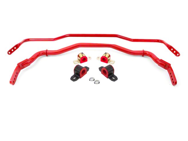 This means increased performance with no sacrifices. The SB763 sway bar kit by BMR Suspension attaches to your Mustang with 95-durometer polyurethane bushings for the front and 88-durometer for the rear to reduce deflection from stock rubber bushings, resulting in improved sway bar control and handling. When performance is a must, rely on BMR Suspension! BMR Suspensions SB763 sway bar kit is available in black hammertone and red powdercoat for long-lasting good looks. Installation time is about 2-3 hours. Proudly made in the U.S.A.!