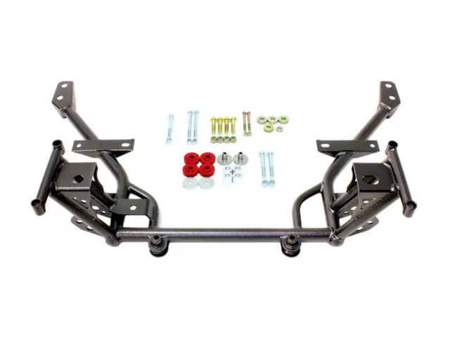 Reduce weight, increase frontend rigidity, and add clearance for large-tube headers and turbo kits on your S197 Mustang with a Tubular K-member from BMR Suspension. BMR Tubular K-Members are designed to provide a lightweight alternative to the heavy and bulky factory K-member. Manufactured from 1-inch, 1-1/4-inch, and 1 -inch DOM tubing, BMRs K-members give you a lightweight, extremely strong K-member. Every BMR K-member is 100-percent bolt-in and requires no modifications for fitment.Designed for street performance, drag race, and handling applications, BMR Tubular K-members drop weight and significantly increases frontend structural rigidity. BMRs unique K-member design feature integrated engine mounts that replace the heavy factory mounts. This additional weight reduction allows us to use larger diameter tubing and thicker mounting plates for additional strength over other companies K-members. The OE K-member and engine mounts weighs 46-pounds, while BMR K-member weighs only 26-pounds, giving you a 20-pound weight reduction. When combined with BMRs lower A-arms and other lightweight frontend parts, weight reduction of up to 75 pounds is easily achievable.BMR Suspensions KM018 Tubular K-Member is available in black hammertone and red powdercoat for long-lasting good looks. Installation time is about 3-4 hours. Proudly made in the U.S.A.!NOTES:- To retain the OE aero pan on 2011-2014 Mustangs, modification is necessary as the OE pieces are not a direct fit to the BMR K-Member.- BMR highly recommends its A-Arm Support Brace (AAS001) when using its Tubular K-Members for street and/or handling use.- BMR billet aluminum Motor Mount Upgrade (MM006) is recommended for applications above 700 lb-ft of torque.
