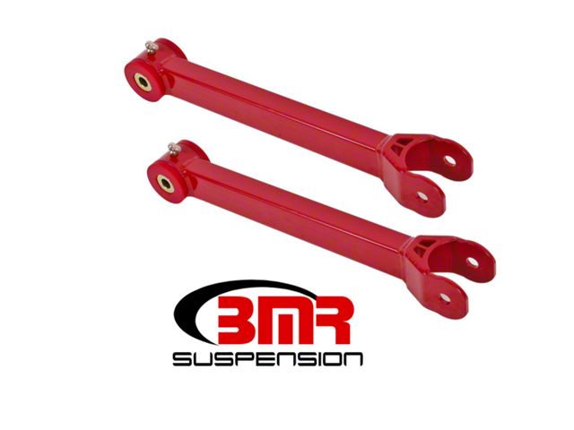 Launching harder, reducing wheel hop, and adding cornering consistency to your 2016-newer Chevrolet Camaro is easy with lower trailing arms from BMR Suspension. Stock stamped steel control arms with soft rubber bushings deflect under load and absorb power instead of transferring it to the tires. BMR's polyurethane, non-adjustable trailing arms for Camaros (TCA059) are manufactured from heavy-duty 1x1.5-inch boxed steel tubing. The open end is formed from CNC laser cut, CNC formed 3/16-inch steel plate. This design gives you a strong control arm that greatly improves performance. Greasable, 95-durometer bushings add a solid, more responsive feel over the stock rubber bushings. BMR's bushings are internally fluted, which allows grease to evenly coat the inner sleeve. These flutes also direct grease to the outer edge of the bushing, keeping the thrust surface lubricated. This efficient lubrication ensures quiet, reliable operation over the life of the bushings. BMR Suspension designed the TCA059 to work well in street performance, drag race, and road race applications. The stock trailing arms flex under cornering loads giving you inconsistent handling characteristics. Combine this with soft bushings that have massive amounts of deflection and you're left with poor performance. The TCA059's heavy-duty construction eliminates trailing arm flex, giving you much improved repeatability on the street, starting line, or in the corners. BMR's polyurethane bushings are designed to be compliant enough to give you a comfortable ride and absorb NVH, while remaining firm enough to stand up to high loads of any performance environment. The bushings easily handle the high compression loads of hard launches and hard acceleration, yet offer plenty of articulation for great handling. These are the perfect upgrade for the enthusiast looking to improve performance at an affordable price, while maintaining acceptable NVH levels and ride quality.